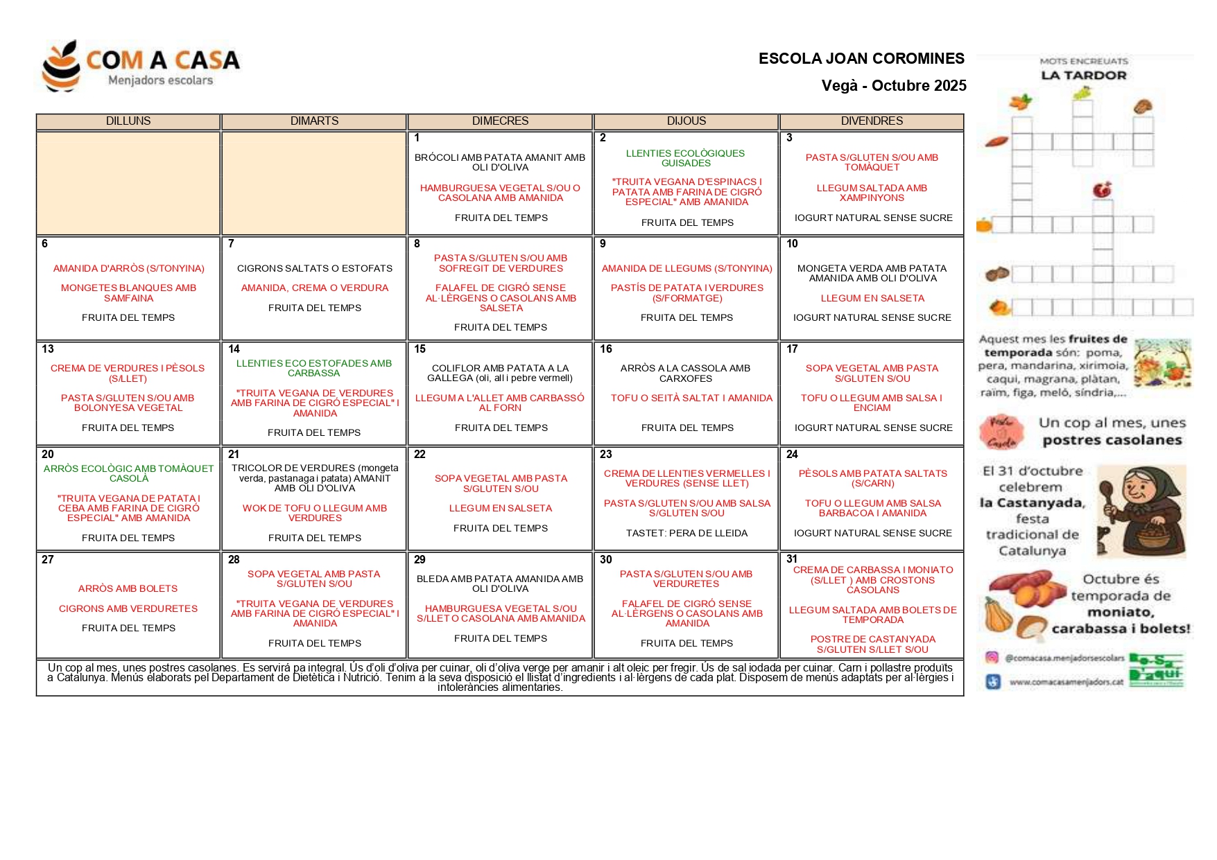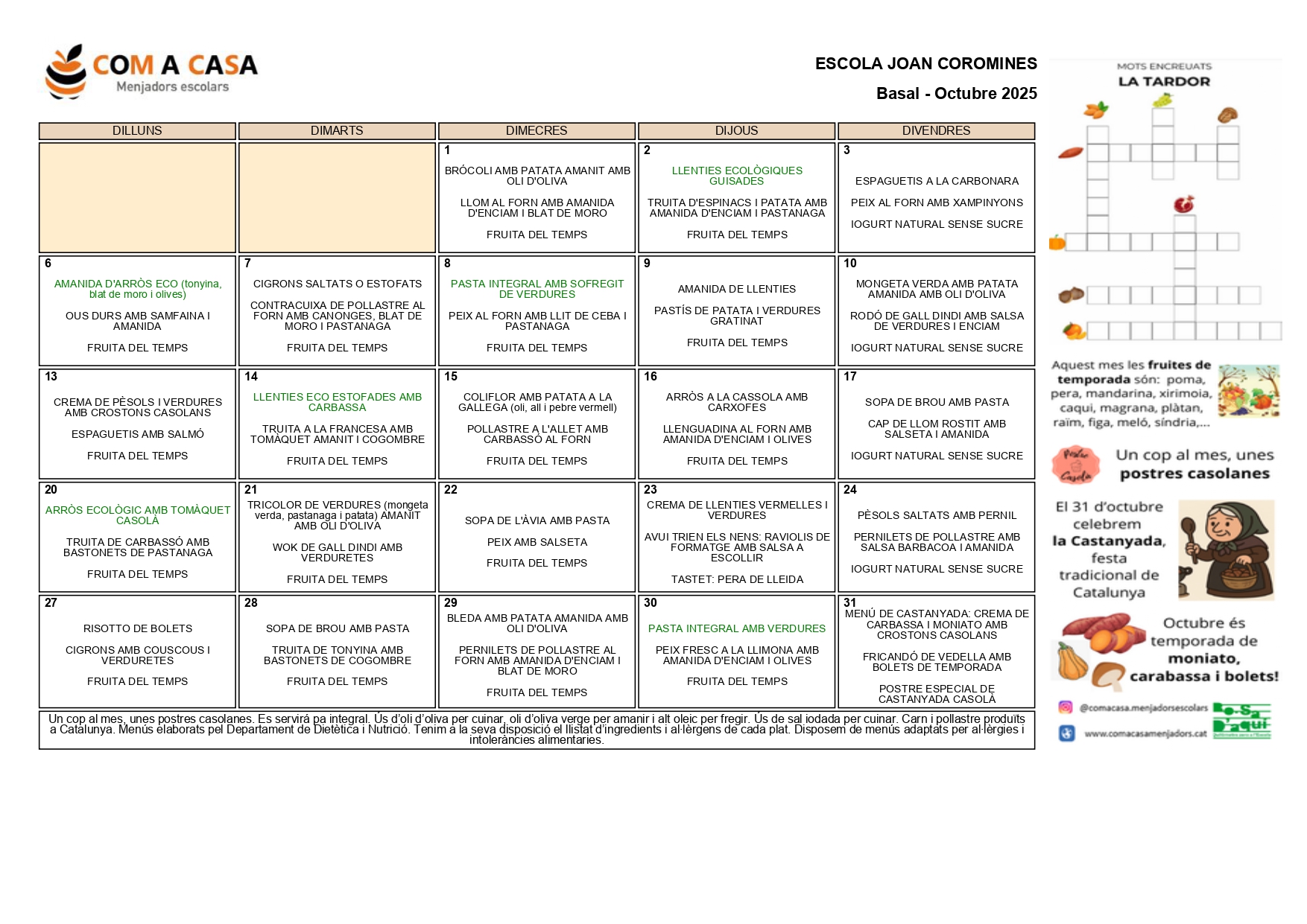 Per a consultes sobre el servei de menjador, podeu contactar amb la coordinadora a través del següent telèfon o correu electrònic:
