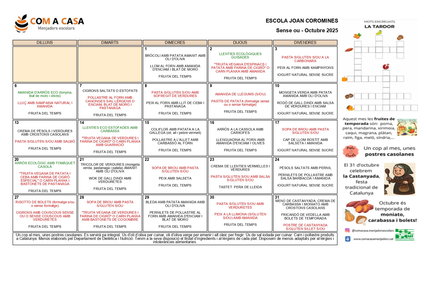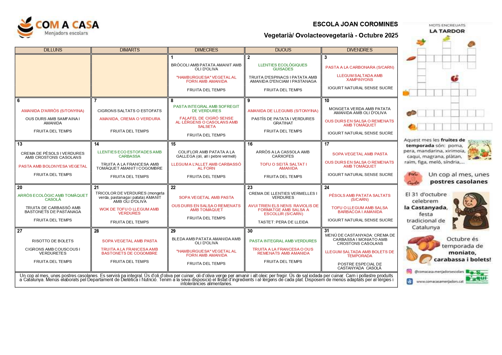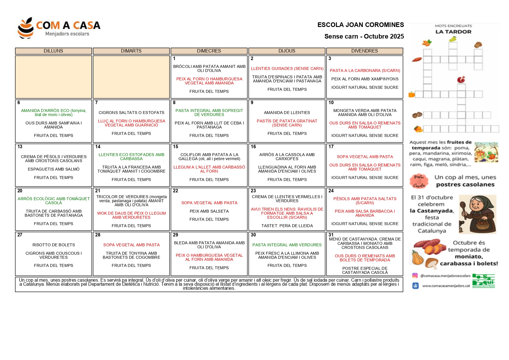 Menús del mes