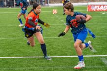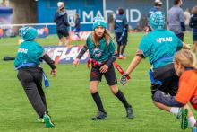 El futbol flag és un esport d'equip mixte (com el korbol) relativament nou. És una variant sense contacte del futbol americà que es juga cinc contra cinc (on cada jugador o jugadora duu dues cintes lligades a la cintura) i on l'objectiu del joc és arribar a l'altra banda del camp amb la pilota a les mans sense que l'equip contrari et tregui una cinta.